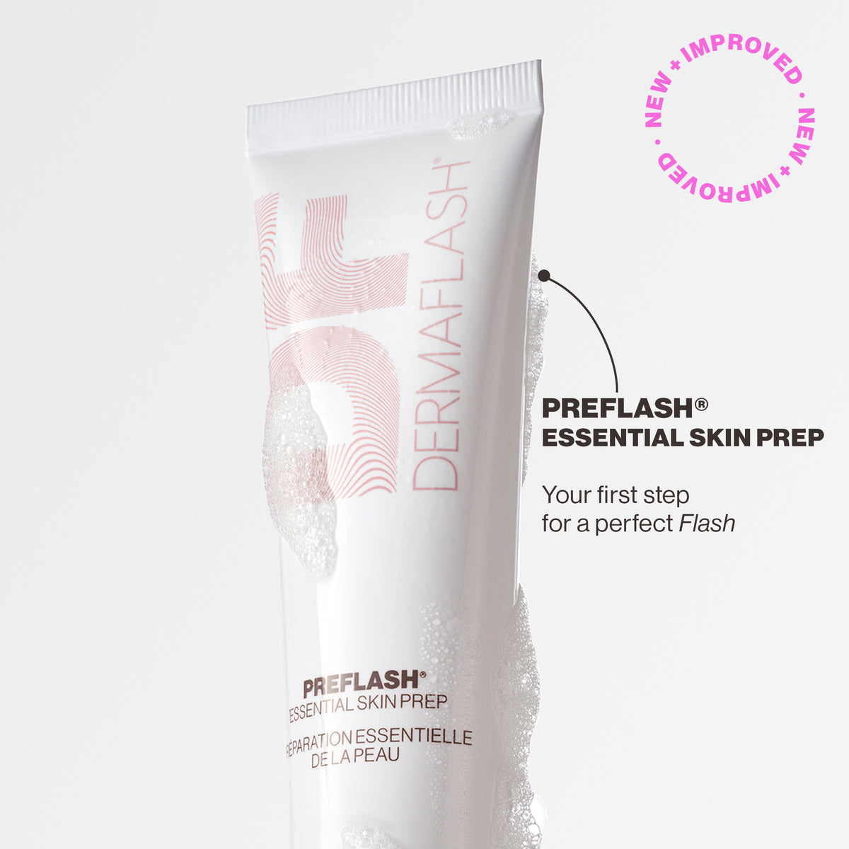 - PREFLASH™: Created to de-fat the skin and remove all traces of oil and residual products. This specially formulated cleanser leaves skin feeling squeaky clean and creates the ultimate surface for the DERMAFLASH treatment.